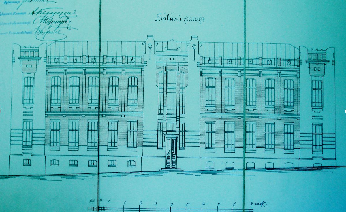 В окончательном виде проект предусматривал строительство двухэтажного кирпичного здания с подвалом для размещения котлов центрального отопления, и полуподвалом для помещения прислуги и складов. На 1-м этаже размещались: вестибюль, раздевальные, физический кабинет, лаборатория, библиотека, канцелярия, уборные и квартира инспектора школы. На 2-м этаже: 4 класса, учительская комната, рекреационный зал и уборные. Квартира инспектора школы устраивалась с таким расчетом, чтобы в будущем, при необходимости, ее можно было переоборудовать в дополнительные два класса. Стены здания выполнялись из красного кирпича, с частичной разделкой из белого. Полы в классах, учительской, библиотеке и рекреационном зале должны были быть паркетные; в других помещениях досчатые и терракотовые, а в подвале частично асфальтовые.